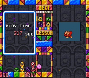 Retrouvez l'univers de la petite boule rose métamorphe dans un style de jeu qui ne lui est pas familier dans Kirby's Ghost Trap sur Super Nintendo. En effet, ce jeu de réflexion vous fait affronter les ennemis de l'univers de Kirby sur un écran où il vous faut aligner des blobs de couleur pour gagner des points et faire tomber des cailloux dans l'autre plan pour bloquer l'adversaire. Affrontez ainsi 16 personnages et remportez la compétition de Ghost Trap de Dream Land.