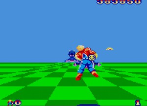 Space Harrier sur Game Gear est un shoot'em up. Le personnage dirigé à la troisième personne peut courir ou voler, et doit éviter les obstacles et tirs ennemis. Faites preuve d'adresse pour arriver au terme des 18 niveaux, chacun se terminant par un affrontement avec un boss.