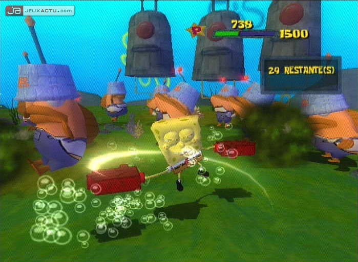 Bob l'Eponge et son fidèle ami Patrick font un voyage périlleux pour retrouver la couronne du roi Neptune dans le jeu de plates-formes : Bob l'Eponge : Le Film sur Gamecube. Retrouvez nos héros dans une quête dangereuse, épique et comique vers des territoires inexplorés. Retrouvez les voix authentiques du dessin animé et toute la bande du héros le plus absorbant du petit écran.