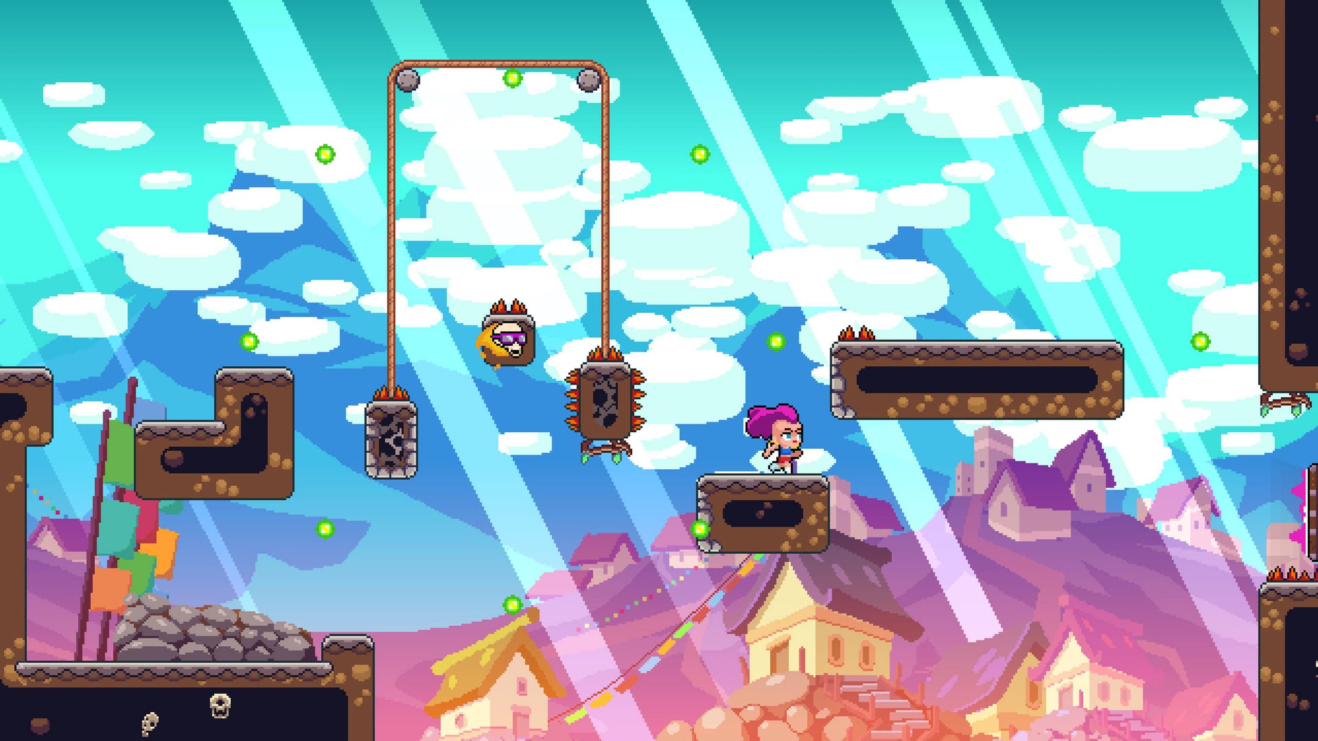 Dans ce jeu vous jouez Glam, son objectif est de sauver sa mère des griffes du royaume de Caterina. Elle est retenue en captivité par la méchante sorcière qui veut empêcher les pouvoirs de Glam et de sa mère de s'unir Glam possède la compétence la plus unique dans l'histoire du jeu vidéo: Elle peut attraper des branches et se balancer en utilisant ses cheveux. Les contrôles sont simples: trois boutons et un joystick. Maîtrisez vos aptitudes à vous balancer et à sauter sur les parcours d'obstacles épiques où chaque mort est une leçon. Les niveaux sont faits avec divers objets et ennemis, chaque niveau récompense vos compétences d'escalade et votre agilité. Les niveaux sont répartis en 11 chapitres, chaque chapitre ayant son propre péril unique : cubes suspendus, gobelins et crânes, plateformes coulissantes et tournantes, faux planchers, canons, caisses.