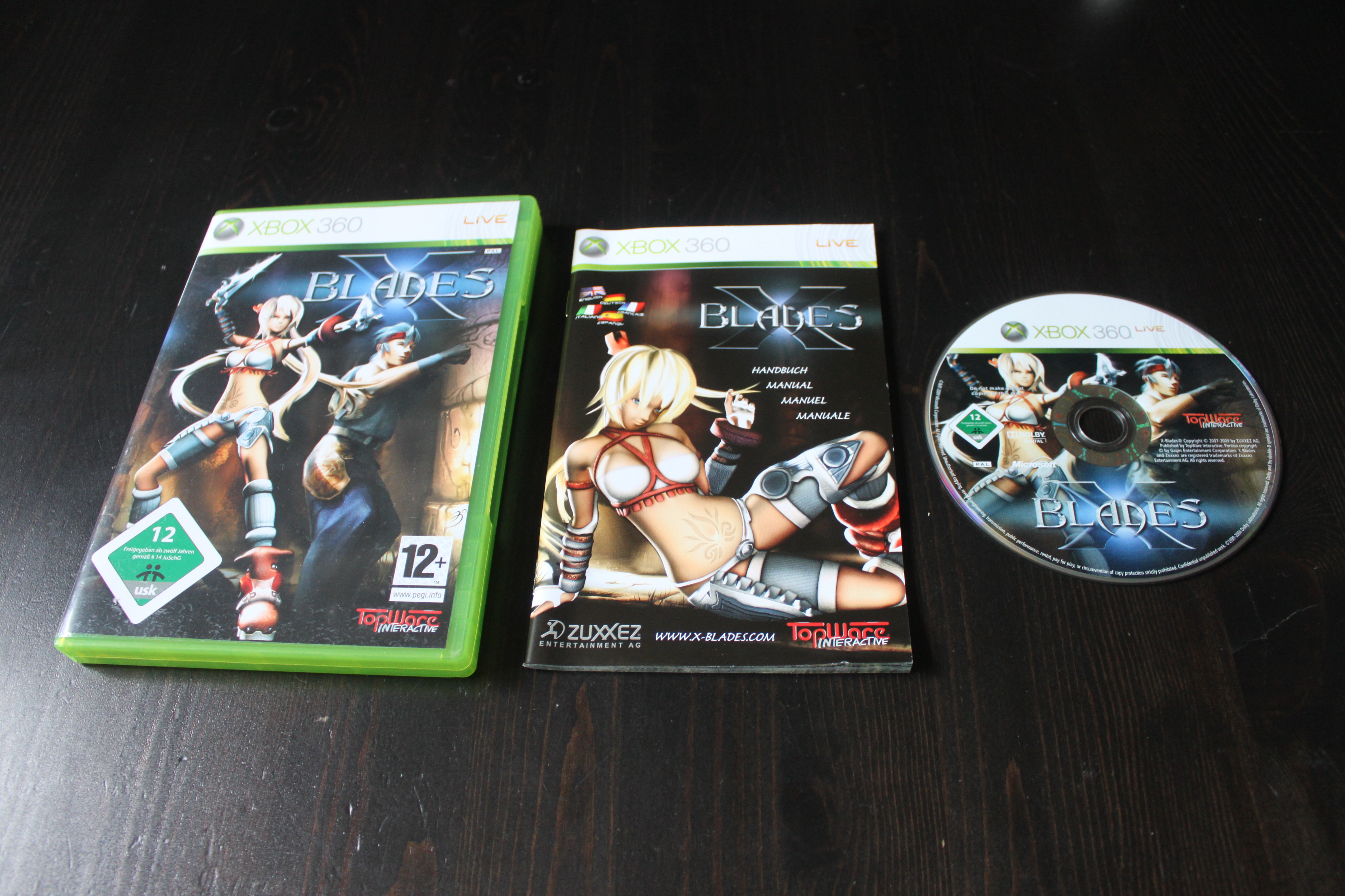 X-Blades sur Xbox 360 met en scène une jeune héroïne très légèrement vêtue nommée Ayumi. Chasseuse de trésors accomplie, cette dernière va devoir repousser les forces du mal et trouver les artefacts qui permettront de faire régner la paix sur le monde. Pour cela elle dispose d'un véritable arsenal : deux épées couplées avec des pistolets, des aptitudes d'acrobate et des pouvoirs magiques élémentaires qu'il faut utiliser avec soin, en identifiant précisément chaque ennemi.